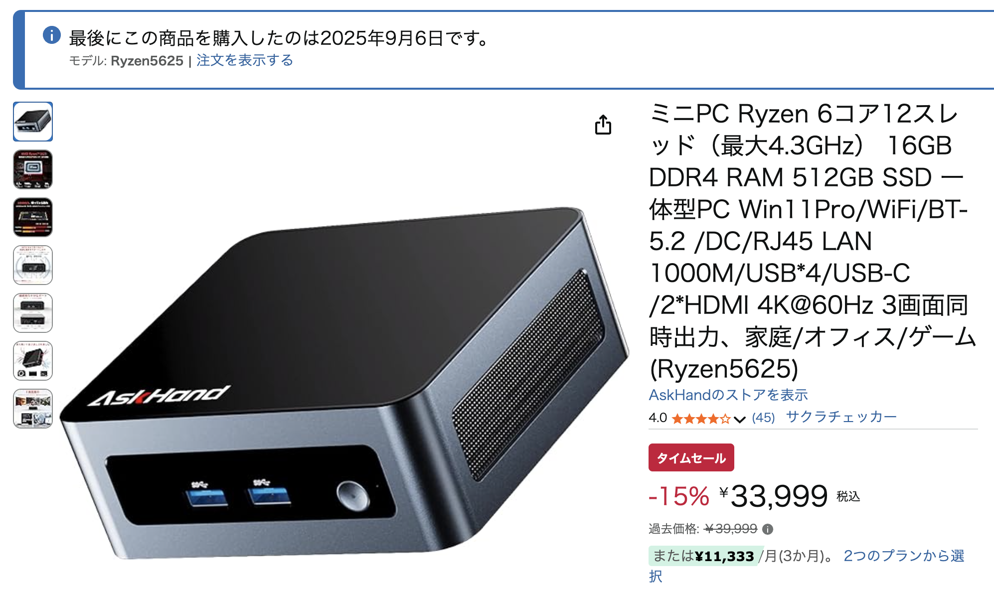 できるだけ(初期・維持費ともに)金をかけたくないと考え色々調べていたら、どうやら miniPC というのがそれに適しているという話を聞いていたので、Amazon で調べていたら良さそうなのを見つけました