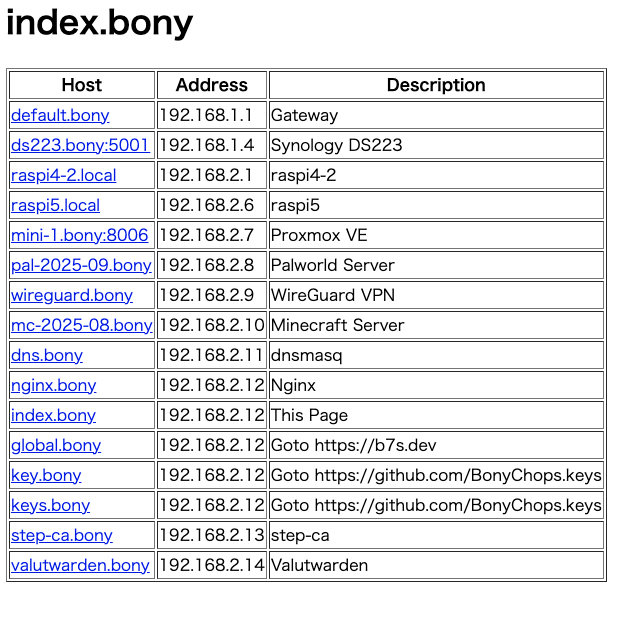 せっかく独自の DNS 鯖を立てたので、この LAN でのみ使える独自 TLD .bonyを設定してみました。