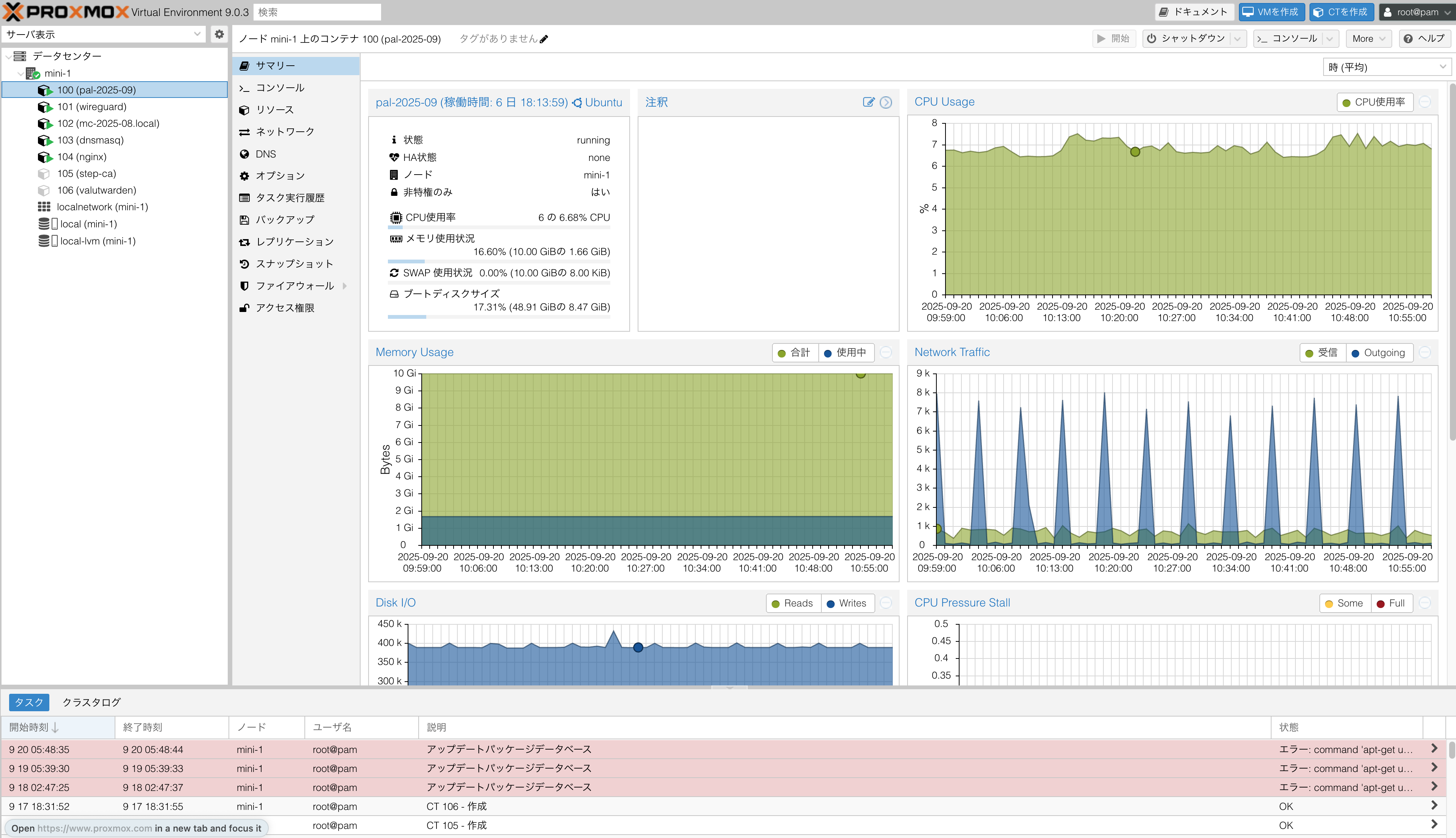 余談ですが、使用している Template は ubuntu-24.04-standard です。それの前に使用していた、任意で落としてきたテンプレートには openssh-server が同封されておらず、のちの Ansible 実行ができないため頭を抱えていました。